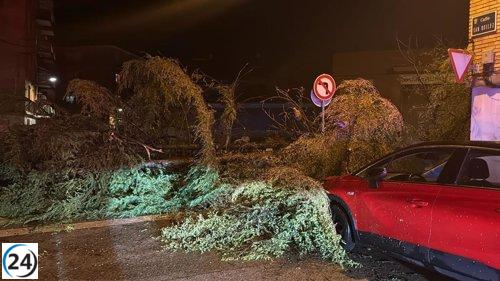 Tormenta devastadora causa daños severos en Binéfar: árboles caídos y locales inundados.