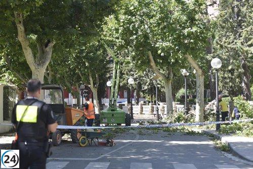 La Brigada de Jardines de Huesca remueve los desechos del temporal
