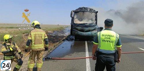 Incendio en autobús de la N-II en Fraga (Huesca) sin heridos